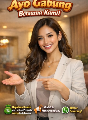 hanya perlu membagikan kode promosi Transparan: komisi langsung dihitung dari setiap transaksi. Potensi besar: cocok untuk influencer lokal, komunitas, atau siapa saja yang ingin menambah penghasilan